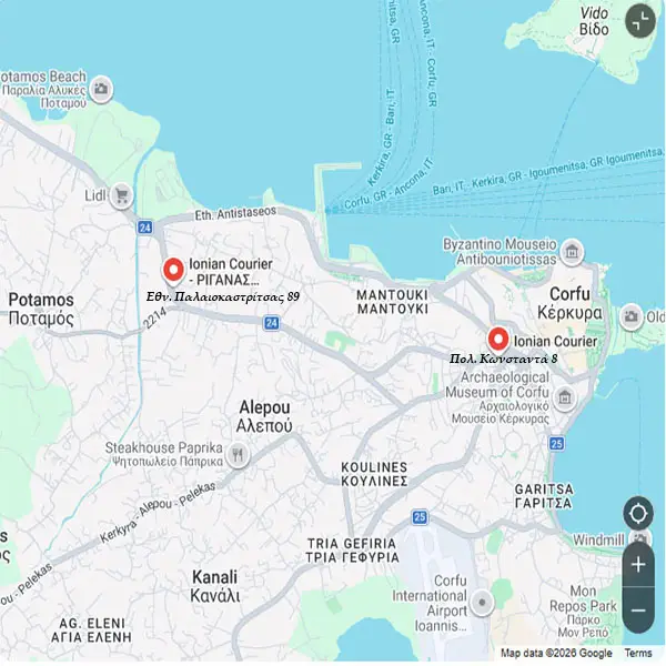 Η Ionian Courier διαθέτει 2 καταστήματα στην πόλη της Κέρκυρας για την καλύτερη εξυπηρέτηση σας: